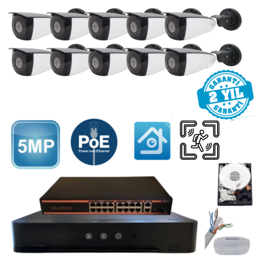 10 ADET 5 MP METAL KASA IP POE 4K 42 LED DIŞ MEKAN SU GEÇİRMEZ GÜVENLİK KAMERASI